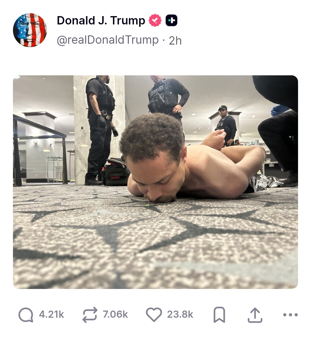 كما نشر ترامب مقطع فيديو للمشتبه به يركض محاولاً عبور نقطة تفتيش أمنية.