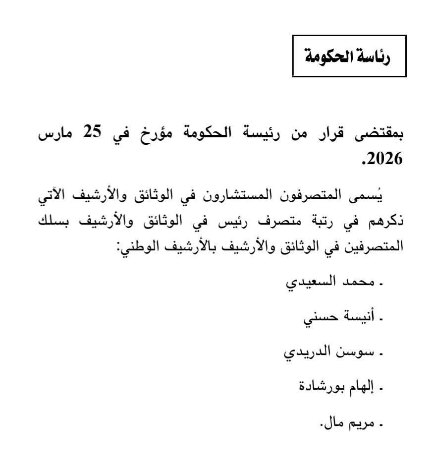 صدرت بالعدد الاخير للرائد الرسمي للجمهورية التونسية بتاريخ 27 مارس 2026 تسميات جديدة صلب رئاسة الحكومة وفي ما يلي التفاصيل..