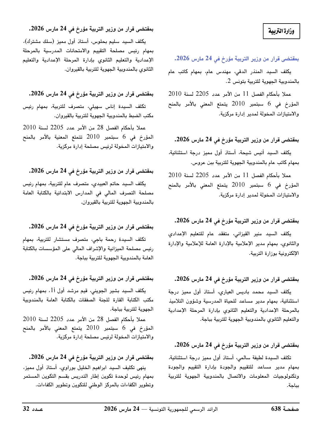 صدرت بالعدد الاخير للرائد الرسمي للجمهورية التونسية تسميات جديدة صلب وزارة التربية وفي ما يلي التفاصيل..